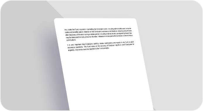 125 Any costs the Fund incurred in correcting the Employer’s error, including administrative and computer costs and benefits paid in reliance on the Employer’s erroneous contributions, including amounts paid after discovery of the error during a review period (including external review) as required by federal law, may be deducted from any amounts refunded. Interest will not be paid to the Employer on the erroneous contributions. It is very important that Employers carefully review contributions and reports to the Fund to avoid erroneous payments. The Fund relies on the accuracy of Employer reports to credit Employees for eligibility. Any errors must be reported to the Fund promptly.
