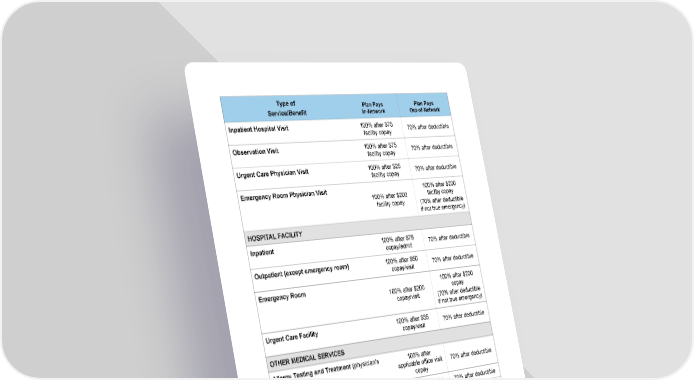 2 Type of Service/Benefit Plan Pays In-Network Plan Pays Out-of-Network Inpatient Hospital Visit 100% after $75 facility copay 70% after deductible Observation Visit 100% after $75 facility copay 70% after deductible Urgent Care Physician Visit 100% after $25 facility copay 70% after deductible Emergency Room Physician Visit 100% after $200 facility copay 100% after $200 facility copay (70% after deductible if not true emergency) HOSPITAL FACILITY Inpatient 100% after $75 copay/admit 70% after deductible Outpatient (except emergency room) 100% after $50 copay/visit 70% after deductible Emergency Room 100% after $200 copay/visit 100% after $200 copay (70% after deductible if not true emergency) Urgent Care Facility 100% after $35 copay/visit 70% after deductible OTHER MEDICAL SERVICES Allergy Testing and Treatment (physician’s office) 100% after applicable office visit copay 70% after deductible Ambulance Transport 90% after deductible 70% after deductible Ambulatory Surgical Facility 100% after $50 facility copay 70% after deductible Bariatric Surgery If Plan language and Quantum Health’s established clinical criteria met 100% after $75 facility copay Not covered Chemotherapy 90% after deductible 70% after deductible Chiropractic Care Limit: Maximum of 20 days per calendar year 100% after $25 copay/visit 70% after deductible Diagnostic Lab and X - ray (Independent Facility) 90% after deductible 70% after deductible